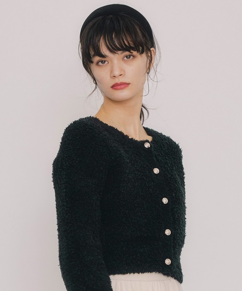 ふわっと可愛いをひとさじ、冬映えブークレカーデふんわりとしたブークレシャギー素材が魅力のカーディガン。軽やかな着心地ながら、ふっくらとした風合いで季節感を引き立てます。やや短めの丈感でスタイルアップが叶い、ワンピースやハイウエストボトムとも好相性。フロントにはクラシカルなエンブレムボタンをあしらい、シンプルながらも上品なアクセントをプラス。羽織りとしてはもちろん、ボタンを閉じてトップスとして着こなすのもおすすめです。透け感:なし裏地:なし伸縮性:あり生地の厚さ:厚手F:着丈43cm 身幅44cm 肩幅32cm 袖丈58cm
