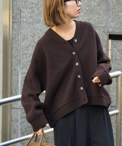 ◆大人気!AQUAカーディガンが新色を携えて再入荷!・旧品番25080220304040の追加品番です。・同一商品でも個体差が生じるため、採寸内容に若干の差が生じる場合がございます。ふんわり軽くて、あたたか。毎年人気のAQUAシリーズに、新型カーディガンが登場。ふくらみ感とやわらかさ、そしてぬくもりを兼ね備えた、肌触りの良いカシミヤ混ウールを使用。編地のふっくらとした風合いが引き立つ一枚で、秋口にはライトアウター感覚でも活躍します。着丈は腰くらいの、バランスの取りやすい長さ。横にややゆとりを持たせた身幅と、浅めのVネックでプルオーバー感覚でも着られるデザインに仕上げました。ボタンを留めても開けてもサマになる、着まわしやすさも魅力です。**********************透け感:なし裏地:なし伸縮性:あり光沢感:なし生地の厚さ:厚手**********************※シリーズのご案内AQUAタートルプルオーバー(品番:25080220303040)AQUAクルーネックプルオーバー(品番:25080220305040)※取り扱いについては、商品についている品質表示でご確認ください。※こちらの商品は、FRAMeWORK での取り扱いになります。直接店舗へお問い合わせの際は FRAMeWORK 店舗へお願い致します。※照明の関係により、実際よりも色味が違って見える場合があります。またパソコン・スマートフォンなどの環境により、若干製品と画像のカラーが異なる場合もございます。予めご了承の上ご注文ください。※商品の色味は、商品アップ画像をご参照ください。本体:ドライクリーニング