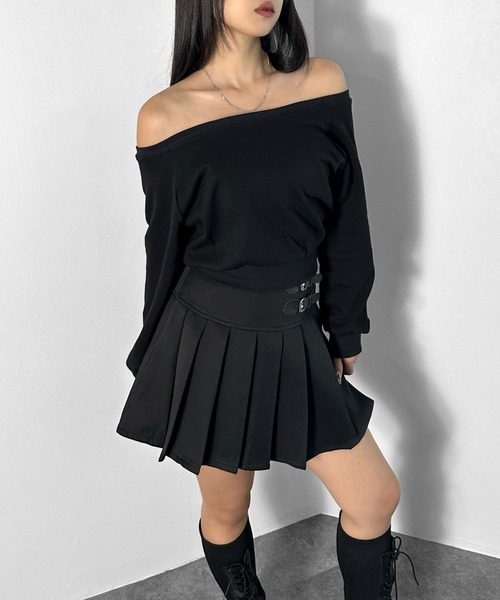 【LVEU.】オフショルスウェットトップス / トップス スウェット オフショル オフショルダー クロップド ショート 長袖 ブラック ホワイト グレー ZOZOTOWN限定