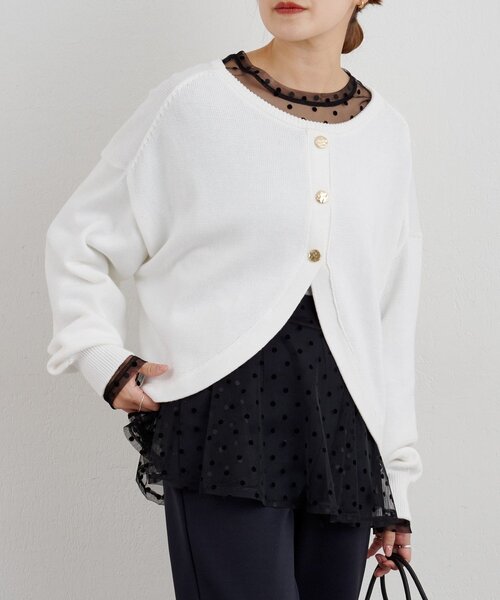シアーの上品な透け感がナチュラルな肌見せを演出。 レイヤードスタイルがトレンドの今季にぴったりなアイテムです。 一枚ではもちろん華やかに、 ニットやスウェットの中に入れてドット柄をのぞかせるのがポイントです。 ドットはフロッキー加工なので、凹凸があり、一枚で着ても寂しくならず存在感のあるデザインです。 - - - - - - - - - - - - - - - 透け感:あり 裏地:なし 伸縮性:ややあり 光沢感:なし 生地の厚さ:薄い - - - - - - - - - - - - - - - 【注意事項】 ※撮影環境により、光の当たり具合で色味が違って見える場合があります。あらかじめご了承下さい。 ※画像はサンプルの為、実際にお届けする商品と仕様が異なる場合がございます。 ■「商品のお気に入り登録」で ハートマークをクリックし、お好きなカラーを選んでお気に入りに登録すると 入荷情報や残り1点の通知、完売カラーの再入荷、セール情報などを受け取ることができます。 登録して頂いた商品だけが対象となる、あなただけのタイムセールが開催されることも! ■「ブランドのお気に入り登録」で 新商品や再入荷など、いち早くSHENERYのお得な情報を 受け取ることができますので、ご登録をおすすめします!