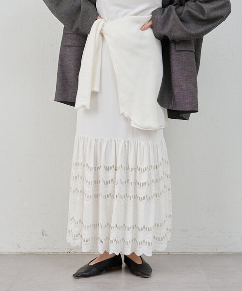 繊細なスカラップ刺繍。甘すぎない大人のフレアースカートまだニットが多い季節にも、これから薄手になる季節にもぴったりなスカートです。マーメイドやタイトが多かった中で、新鮮なシルエットで着て頂けます。腰周りはすっきり見えるようにIライン、裾だけスカラップ仕様でひろがるので腰ハリさんも気にせず履いて頂けるシルエットになっております。ウエストがゴムなので今年はそのまま着るのではなく胸まであげてベアワンピース風に着るのもかわいい。(パルクロで着ていますので参考に)- - - - - - - - - - - - - - -透け感:オフのみややあり裏地:あり伸縮性:ややあり光沢感:なし生地の厚さ:普通- - - - - - - - - - - - - - -【注意事項】※撮影環境により、光の当たり具合で色味が違って見える場合があります。あらかじめご了承下さい。※画像はサンプルの為、実際にお届けする商品と仕様が異なる場合がございます。※長時間濡れたままで置かないでください。※この製品は素材の特性上、引っ掛かりが出やすくなっています。ご着用の際は充分ご注意ください。※クリーニングの際はネットをご使用下さい。※アイロンは裏から当て布をしてかけて下さい。※この製品は素材の特性上、水分や汗により色落ちすることがあります。ご着用の際は充分ご注意ください。※この製品は刺繍がしてあります。とてもデリケートなものですのでバッグや指輪に引っ掛からないようご注意ください。※この製品は激しい運動や強い力がかかると、滑脱(縫い目が開いてリ縫いしろが抜ける)したり目寄れ(織り糸が滑って片寄り、折り目が開く)することがあります。ご着用の際は充分ご注意ください。■「商品のお気に入り登録」でハートマークをクリックし、お好きなカラーを選んでお気に入りに登録すると入荷情報や残り1点の通知、完売カラーの再入荷、セール情報などを受け取ることができます。登録して頂いた商品だけが対象となる、あなただけのタイムセールが開催されることも!■「ブランドのお気に入り登録」で新商品や再入荷など、いち早くSHENERYのお得な情報を受け取ることができますので、ご登録をおすすめします!