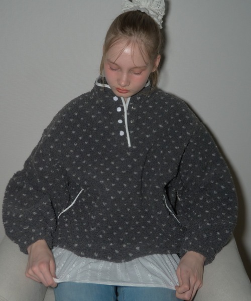 Birthdayroom NEW ARRIVAL TREND ITEM!《ガーリームード高まる♡もこもこドットフリースジャケット》 寒い季節の主役アウターにぴったりな、ボア素材のハーフジップジャケットが登場♡存在感たっぷりのドット柄×ぽわんとしたボリュームスリーブで、一枚でトレンド感満点な仕上がりに。首元は開き加減を調整でき、ハイネック風にも着用OK◎スカート合わせで甘めガーリーに、パンツ合わせでカジュアルMIXにも着こなせる万能アウターです。 --- POINT --- ・もこもこ感が可愛いフリースボア素材 ・トレンド感あるドット柄デザイン ・ハーフジップで首元のニュアンス調整OK ・パンツにもスカートにも好相性なボリューム感 ・グレー/ベージュの2色展開 --- FABRIC --- ●素材:ポリエステル100%●裏地:なし●透け感:なし●伸縮性:なし●生地の厚さ:厚手●カラー:グレー、ベージュ --- SIZE --- FREE着丈:68cm身幅:62cm肩幅:52cm袖丈:49cm --- ATTENTION --- ※生地の特性上、若干の毛羽立ちや毛抜けが生じる場合がございます。※モニター環境や撮影時の光加減により、実際の色味と異なる場合がございます。※柄の出方には個体差がございますので予めご了承ください。 --- INFORMATION --- 〈商品のお気に入り登録〉ハートマークを押して再入荷通知を受け取ろう!完売カラーもいち早くチェック♡ --- Birthday room / バースデイルーム ---トキメキを詰め込んだロマンティックな世界観毎日がバースデーのような「特別なギフト」をあなたに。