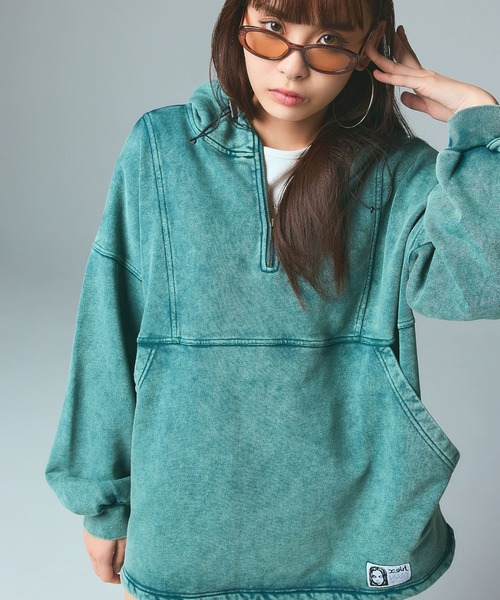 毎シーズン大人気のアノラックが今季も登場!一枚でサマになるスウェットパーカー■デザイン大好評のスウェットアノラックが今季も登場。シンプルでありながら、独特の風合いな加工感がスタイリングに映えます。春シーズンにもぴったりな、鮮やかなカラーリングも魅力。フードはドローコード付きで、シルエットの調整が可能。旬なハーフジップ仕様で、首元に程よい抜け感を演出。切り替えのステッチデザインもアクセントになり、一枚でサマになる仕上がりに。裾には、大人気なFACEロゴのネーム付き。裾にもコード付きで、スタイリングに合わせてシルエットの変化を楽しめます。ゆったり着用できるオーバーサイズで、メンズライクな着こなしに。■素材裏毛のスウェット素材で、デイリーに重宝するストレスフリーな着用感。春コーデにはもちろん、秋冬までロングシーズン活躍できます。■スタイリングビッグシルエットのアノラックには、ミニスカートと合わせたストリートスタイルがおすすめ。カジュアルなアイテムに幅広くマッチします。・透け感:なし・伸縮性:あり・生地の厚さ:普通・裏地:なし(裏毛)・長袖■X-girl(エックスガール)■取り扱い注意事項・アテンションタグ・洗濯表示を必ずご確認の上、ご使用ください。・画像の商品は光の照射や角度により、実物と色味が異なる場合がございます。また表示のサイズ感と実物は若干異なる場合もございますので、予めご了承ください。・画像の商品はサンプルとなります。実際の商品と色味、仕様、加工、サイズ、素材等が若干異なる場合がございます。・生産の過程で、素材やサイズなどに若干の変更が出る可能性があります。・予約商品など一部商品につきましては、生産の都合上、お届け時期が前後する場合がございます。▼商品のお気に入り登録残り1点や再入荷、セールなどの通知を受け取ることができます。▼ブランドのお気に入り登録新作アイテムや再入荷、クーポンなどお得な情報をいち早く受け取ることができます。