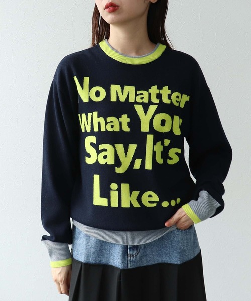 RISLEY / 2WAYロゴニット大人カジュアル女子にこそ着て頂きたいオススメニットです。 カラフルなロゴが目を引くデザインで、アウターのインでもコーデのスパイスになってくれます。 袖口や襟元の配色も程よいアクセントに! 肉厚過ぎないハイゲージニットなのでロングシーズン着て頂きやすいです。 RISLEYらしいオリジナリティあふれるデザインです。 ※店舗販売11月上旬予定 -------------------------------------- 透け感:なし 伸縮性:あり ケア方法:クリーニング可 ※お洗濯の際は洗濯表示を必ずご確認ください。 -------------------------------------- <コーディネートmodel160cm> <詳細画像model162cm> [RISLEY / リズレイ] 国内やヨーロッパでのバイイングを豊富に経験したクリエイター達による新進気鋭の国内ブランド。 先進的な女性像とブランド独自のオリジナリティを具現化した洗練されたデザインを提案する。