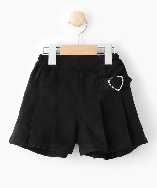 【デザイン】フロントからはプリーツスカートのように見えるキュロットパンツです。ハートのパーツとベルトデザインがコーデのアクセントになった大人っぽい印象の1枚はきちんとしたきちんと感を出したいときにもおすすめ。トレンドのスクール風コーデにもよく合います。【素材】表面が微起毛になったフェイクスエード素材を使用しています。【仕様】・ポケット数:横×1 後ろ×1 ・ウエスト後ろゴム・裏地なし※照明の関係により、実際よりも色味が違って見える場合があります。また、パソコン・スマートフォンなどの環境により、若干製品と画像のカラーが異なる場合もございます。店舗へのお問い合わせ商品番号:122-69074●製品寸法:11(110cm):W42~48cm H72cm 股下4cm 前股上23cm 渡り幅25cm 裾幅25cm12(120cm):W44~50cm H76cm 股下6cm 前股上25cm 渡り幅27cm 裾幅27cm13(130cm):W46~52cm H80cm 股下7cm 前股上26cm 渡り幅29cm 裾幅29cm14(140cm):W48~54cm H84cm 股下8cm 前股上27cm 渡り幅31cm 裾幅31cm備考: