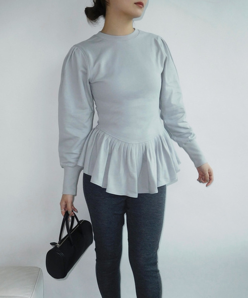 【25AW COLLECTION】 EDIT. FOR LULU25SS好評だったアンジェララさんとのコラボレーションVol2が登場!こちらはペプラムがフェミニンでキャッチーなスウェット。アンジェララさんのお好きな70~80年代らしさのあるデザインでお作りしました。シルエットがフェミニンなので、甘くなりすぎないよう素材は軽さとラフな質感をセレクト。ペプラムもギャザーではなく、細かいタックなのが甘すぎず、VINTAGE感のあるポイントです。ウエストをキュッと絞ったり、ペプラムがカーブで付いていたり、カッティングに拘っています。**********************【スタッフ着用コメント】サイズ感:体にフィットするコンパクトなサイズ感です。カーブの効いたペプラムなので、体のラインがとても綺麗に見え、メリハリのあるバランスで着用できます。素材感:薄手すぎず厚手すぎない裏毛のスウェットなので、夏以外は着用できそうです。着心地:伸縮性はありませんが、ハリ感のない柔らかい生地なので窮屈感なく着用できます。コンパクトだからこそ、プルオーバーを上から合わせたレイヤードスタイルができるのも他にはないポイント。**********************▼シリーズangielala LULU カーディガン(品番:25080800402040)angielala LULU スラブニットパンツ(品番:25030800406040)angelala LULU アイレットニット(品番:25080800403040)※取り扱いについては、商品についている品質表示でご確認ください。※照明の関係により、実際よりも色味が違って見える場合があります。またパソコン・スマートフォンなどの環境により、若干製品と画像のカラーが異なる場合もございます。※商品の色味は、商品アップ画像をご参照ください。<気になったアイテムは『お気に入り』がおすすめです!>お気に入り登録した商品の再入荷・在庫情報・値下げなどの通知を受け取ることができます。モデルサイズ:身長:163cm 着用サイズ:フリー本体:手洗い可能