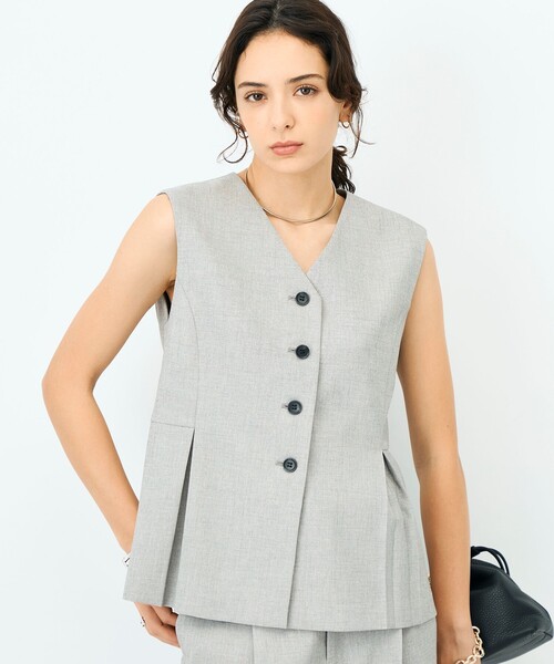 ◇26SS◇NOLLEY'S sophi◆Point・ドライなタッチのシャーク素材を使用したタック入りぺプラムジレ・ブラウスやTシャツをインにするだけでなくタンクトップ等と合わせて一枚着風に着用しても気にならない襟開きに・ジャケットとセットでの着用もおすすめ・防シワ性あり・同素材パンツ(6-0030-1-09-004)、ジャケット(6-0030-1-05-004)と、セットアップでの着用可・手洗い可●お取扱い上のご注意●末永くご愛用頂くために、アテンションタグを必ずご確認の上、着用又はお取り扱い下さい。気になる商品は、お気に入り登録がオススメです!クーポン情報、入荷情報が、通知されるようになります。※店頭及び屋外での撮影画像は、光の当たり具合で色味が違って見える場合があります。商品の色味は、スタジオ撮影の画像をご参照下さい。※商品画像に関しては出来る限り忠実に表示出来るよう努めておりますが、お客様がご利用のモニターの設定及び特性により、実際の商品と比較し色味に若干の誤差が生じる場合があります。※画像の商品はサンプルとなりますので実際の商品と仕様、加工、サイズが若干異なる場合がございます。