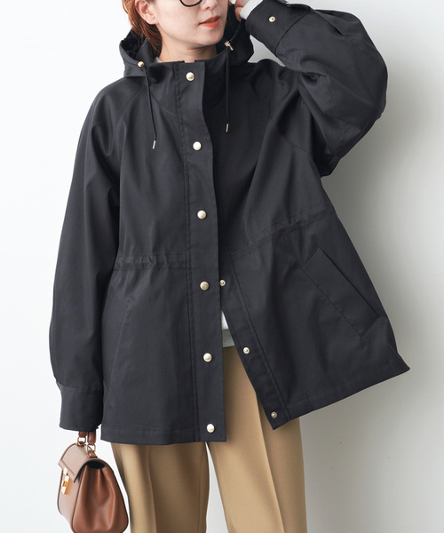 人気の撥水ツイルフーディーブルゾンがアップデート!・こちらの商品は≪24011200802010≫≪25011200801010≫追加商品です。・同一商品でも個体差により、採寸サイズに若干の差が生じる場合がございます。定番でご好評いただいている「撥水ツイルフーデッドブルゾン」を、今シーズンはディテールを今っぽく見直してアップデートしました。素材は引き続き、撥水加工が嬉しい軽くて着心地の良いツイル素材。上品なツヤがあり、ライトアウターとしてデイリーに活躍します。ウエストスピンドルを表出しから内側仕様へ変更することで、スポーティーになりすぎず“きれいめ見え”に進化。附属もより上質なものに見直し、さりげなく品よく仕上げています。着丈や身幅に大きな変更はなく、従来同様にバランス良く着られる程よいオーバーサイズ感。ウエストを絞ればシルエットアレンジもでき、パンツにもスカートにも合わせやすい万能な一枚です。**********************透け感:なし裏地:あり(袖部分のみ)伸縮性:なし光沢感:なし生地の厚さ:普通**********************【スタッフ着用コメント】《スタッフS》20代後半/身長:158cm/普通/普段サイズ:S/着用サイズ:34サイズ感:身頃やアームホールがゆったりとしていて、厚手のトップスの上にも楽に羽織れました。ヒップが隠れるくらいのバランスの取りやすい丈感です。素材感:ロングシーズン着られそうな、さらっとした肌触りの軽やかな素材。着心地:見た目以上にしなやかな素材で羽織りやすいです。付属がゴールドorシルバーなので、カジュアルすぎずきれい目なスタイルにも馴染みそう。**********************※取り扱いについては、商品についている品質表示でご確認ください。※こちらの商品は、Spick & Spanでの取り扱いになります。 直接店舗へお問い合わせの際は Spick & Span店舗へお願い致します。※照明の関係により、実際よりも色味が違って見える場合があります。またパソコン・スマートフォンなどの環境により、若干製品と画像のカラーが異なる場合もございます。※商品の色味は、商品アップ画像をご参照ください。ブラック着用スタッフ:160cm 着用サイズ:38ホワイト A着用スタッフ:160cm 着用サイズ:36ベージュ A着用スタッフ:153cm 着用サイズ:34ブラック詳細着用スタッフ:163cm 着用サイズ:38ホワイト A詳細着用スタッフ:163cm 着用サイズ:36ベージュ A詳細着用スタッフ:163cm 着用サイズ:34本体:手洗い可能