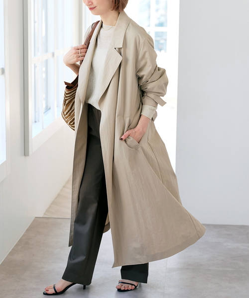 大好評につき追加決定!どんな日もバサッと決まるエアリーコート!・こちらの商品は≪25020200101010≫追加商品です。・追加生産商品は、一部の店舗や通販で販売されている場合がございます。あらかじめご了承ください。・同一商品でも個体差により、採寸サイズに若干の差が生じる場合がございます。・レビュー内容には、品番の異なる同商品のレビューが含まれている場合があり、現在展開していないカラーやサイズの内容が含まれることがございます。ボタンレス仕様で、羽織るだけできちんと感があって今っぽくなれるデザインが魅力。ディテールをあえてつけすぎないことでスタイリングバランスを取りやすく、キレイ目にもカジュアルスタイルにもマッチしやすいよう細かなバランスにこだわりました。美しいシルエットと奥行きのある素材感で、見た目以上に軽く、シンプルながら存在感を感じさせる佇まいです。ベルトを結んでウエストマークすれば、ボリュームの出やすいコーデもバランスよく仕上がります。※アテンション【色落ち】はキャメルのみに該当します。 着用中の摩擦や汗、水などで濡れたことによる他のものへの色移りにご注意ください。※取り扱いについては、商品についている品質表示でご確認ください。※こちらの商品は、Spick & Spanでの取り扱いになります。 直接店舗へお問い合わせの際は Spick & Span店舗へお願い致します。※照明の関係により、実際よりも色味が違って見える場合があります。またパソコン・スマートフォンなどの環境により、若干製品と画像のカラーが異なる場合もございます。※商品の色味は、商品アップ画像をご参照ください。本体:ドライクリーニング