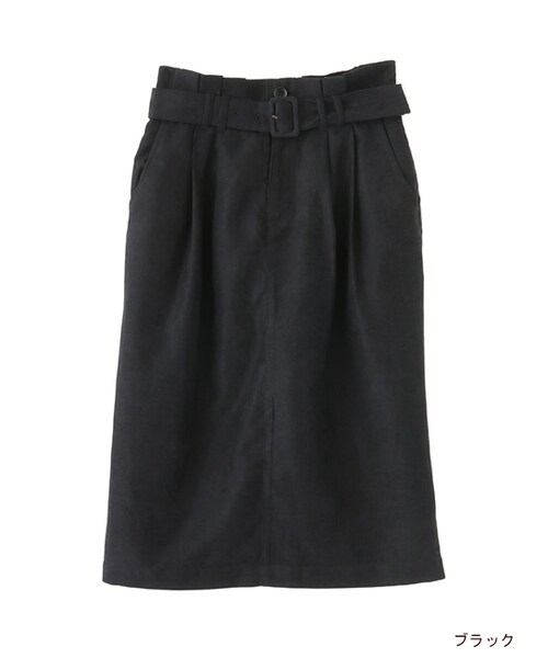 ハイウエストデザインとひざ下丈ですっきりとした印象のタイトスカート。バックにスリットが入り、脚がよりきれいにみえるのも◎。ウエスト後ろにゴムが入るので履き心地も良いです。フリンジとの組み合わせが70'sっぽくてよいです。※取り外し可能共布ベルトが付きます。総裏付きです。