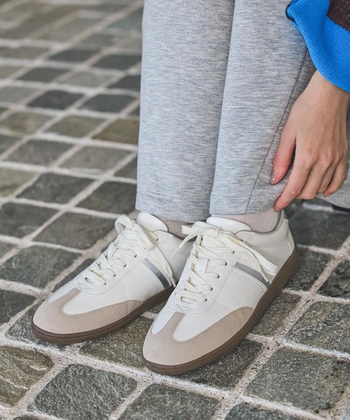 シンプルで幅広いスタイリングに合わせやすいスニーカー。カジュアルにはもちろん、スラックスやスカートなどのきれいめにも相性がよいアイテム。スタイリングのアクセントになるレオパード柄と、シンプルなオフとベージュをご用意しました。