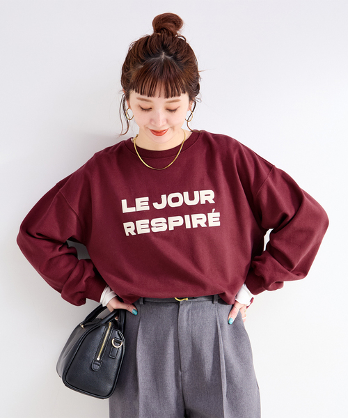表面感のあるフロッキーロゴがアクセントになる裏毛スウェット。短すぎず長すぎずちょうどよい着丈のバランスと、程よい肉感の裏毛素材を使用しリラックス感のある着心地です。丈感はコンパクトですが身幅と袖はゆとりがあり、シャツやブラウスにレイヤードしていただくのもおすすめです。手洗い可能でご自宅でのイージーケアができるのも嬉しいポイントです!**********************透け感:ホワイトのみややあり裏地:なし伸縮性:ややあり光沢感:なし生地の厚さ:普通**********************【スタッフ着用コメント】《スタッフ staff.Y》身長:160cm/普段サイズ:M-L/着用サイズ:フリーサイズ感:身幅ゆったりめです。素材感:くたっとしたコットン混素材。着心地:一枚でもシャツなどをレイヤードしても着やすいシンプルなシルエットで、幅広いシーンで着用できそうです。※あくまで個人の感想です。**********************※取り扱いについては、商品についている品質表示でご確認ください。・形を整えて干してください。洗濯により収縮やねじれ。型崩れすることがあります。・着用中の摩擦や、汗、水濡れにご注意ください。濡れたままの状態で擦れると、色移りすることがあります。※こちらの商品は、B.C STOCKでの取り扱いになります。 直接店舗へお問い合わせの際はB.C STOCK店舗へお願い致します。※照明の関係により、実際よりも色味が違って見える場合があります。またパソコン・スマートフォンなどの環境により、若干製品と画像のカラーが異なる場合もございます。※商品の色味は、商品アップ画像をご参照ください。 グレー着用スタッフ:157cm 着用サイズ:フリーホワイト、ボルドー着用スタッフ:163cm 着用サイズ:フリー詳細着用モデル:162cm 着用サイズ:フリー本体:手洗い可能