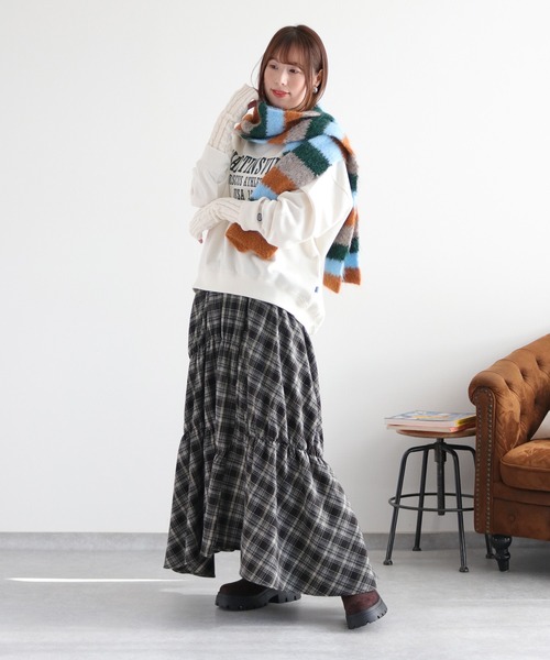 これさえあればコーディネートが一気に華やかに♪ アシンメトリーなデザインが着映え間違いなしの1着です。◇Point◇クラシカルなタータンチェック柄がコーデのアクセントに。やや起毛させた生地を使用しており、冬でも着用できる暖かさです。左右のアシンメトリーなデザインがトレンド感溢れる立体的なシルエットになります。随所に横向きにギャザーを入れており、ゴムになっているのでストレッチ性も抜群!ベースはボリュームのあるフレアスカート。ランダムに入ったギャザーも相まってパッチワーク風なデザインになっています。通常のスカートに比べ生地の分量を多く使用しているので、歩くたびにふんわり揺れる、着映え間違いなしのスカートです♪体型を気にせず着用できるのが嬉しいポイント。イージーケアなので着回し力も抜群です!◇Material◇レーヨン×ポリエステルの混紡ウール素材。着心地は軽く、シワが気にならない生地です。ウエストはゴム仕様なのでストレスフリーな履き心地です。約26cm伸びます。裾にかけて、ほんの少し重みもあるので、着膨れせず落ち感を楽しめます。ウエストもゆったり素材なのでマタニティにもおすすめ♪足さばきも楽ちんです。※裏地あり。透け感はありません。※ご家庭でのお洗濯が可能です。※カラーにより素材の混率が異なります。◇Coordinate◇この秋冬はチェックを主役に!コーデに取り入れやすい柄なので着回しも出来ます。オーバーサイズのニットやスウェットでも上品にまとまります。スカートのデザインにアクセントがあるので、トップスはシンプルに無地でもOK◎。ロゴトップスやスニーカー、キャップなどを取り入れて、あえてハズすスポーツミックスもおすすめ!※照明や天候により実際の色味と異なって見える場合がございます。ご了承くださいませ。【キーワード】#Y2K#10代#20代#30代#40代#50代#ブラウン#マストハブ#旅行#レジャー#クリスマス#ウールスカート