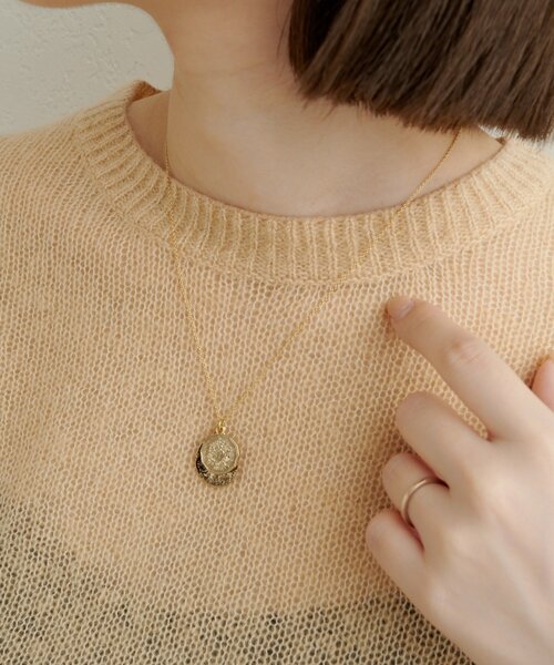 スタイリングのポイントになるコインネックレス・コイン型のトップが首元に華やかさをプラスしてくれるネックレス。・小振りで細めのチェーンデザインが合わせやすくデイリー使いにぴったりです。・お手持ちのシンプルなネックレスとの重ねつけもおすすめです。-------------------------------------- 【商品のお気に入り登録】♡をクリックで気になるアイテムをお気に入り登録していただくと、以下の通知を受け取ることができます。・入荷・再入荷・ラスト一点・セール対象時【ブランドのお気に入り登録 】 新商品や再入荷、セール、クーポン配布などお得な情報を受け取ることができます。--------------------------------------※画像の商品はサンプルです。実際の商品と仕様、加工が若干異なる場合があります。※商品の色味は、撮影場所や光の当たり具合などにより色味が異なって見える場合がございます。また、お客様のお使いのPC・スマートフォン等のモニター環境などにより色味が異なって見える場合がございます。予めご了承の上ご注文ください。※摩擦、汗や水濡れ等により色落ちすることがありますので、淡色系の衣類の着用の際はご注意ください。※この商品は強く引っぱったり、無理に力を加えますと、故障や破損の恐れがありますので、丁寧にお取り扱い下さい。