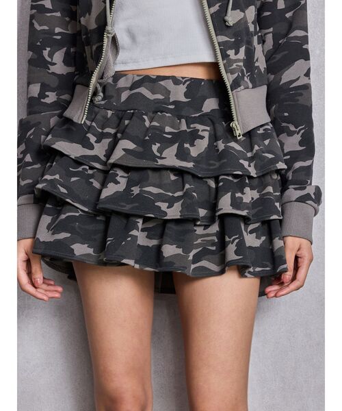 商品コメント:トレンド感満載の裏毛素材のティアードスカートです。MIXはさりげなくGが入っているオリジナルカモフラージュ柄になっています。脚長効果抜群のミニ丈ですが中にインナーパンツがついているので安心して楽ちんに着用していただけます。コーデ:セットアップのショートパーカーと合わせるのがおすすめです。大きめスウェットを合わせて裾からチラ見せするのもGYDAらしくておすすめです。
