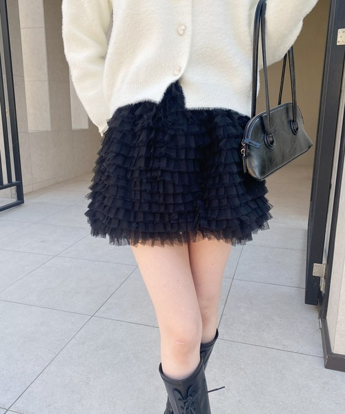 新作のチュールスカートはミニでティアードタイプで登場♡ ♡デザイン♡ チュールのボリューム感が可愛い、新作のティアードミニスカート。 インナーパンツでミニスカートですが安心。 ウエストゴムでフィット感もあり、ブーツとの相性抜群です♡ ♡カラー展開♡ グレー、ブラック、ブラウンの三色展開 ♡生地♡ 表地:ポリエステル100% 裏地:ポリエステル100%を使用 ♡コーデ♡ ボウタイやフリル等、ガーリー要素のあるトップスと合わせると可愛い♡ ~frunco shopping information~ ▼商品のお気に入り登録 完売カラーの再入荷通知入り登録 ♡をクリック!や、ラスト1点の通知、 セール商品の通知、をお知らせします。 ▼ブランドのお気に入り登録 新商品や再入荷など、fruncoのお得な情報を いち早く受け取ることができます。 ぜひご活用ください! 【商品画像について】 ・画像はサンプルです。 実際の商品と仕様、加工、サイズ、カラーが 若干異なる場合がございます。 ・生産時期により多少の色ブレが生じてしまう可能性が ございますことをご了承くださいませ。 ・撮影場所や照明の照射・角度、お使いのモニター環境により お色味が異なる場合がございます。 予めご了承ください。