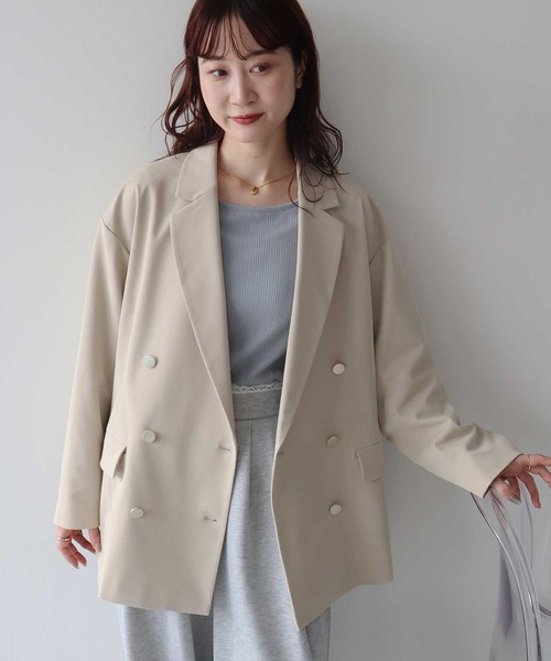 きちんと見えるダブルブレストのジャケット。程よく構築された肩とウエストのシェイプで、オン・オフどちらでも活躍します。オフィススタイルでは、同色系のボトムス合わせがおすすめ◎カジュアルなパンツ、女性らしいワンピースとも相性が良く、幅広いテイストにマッチするアイテムです。透け感[なし]生地の厚さ[普通]光沢感[なし]伸縮性[なし]裏地[あり]ポケット[あり]#春アウター#テーラードジャケット#春服※サンプルにて撮影を行っております。実際にお届けする商品と仕様やサイズが異なる場合がございます。※モデル着用画像は光の当たり具合で色味が違って見える場合がございます。商品の色味は物撮りの画像をご参照ください。● earth music&ecology ●(アースミュージック&エコロジー)「いいことある服。」たかが服。されど服。波風の多い日々のなかでもほほえんで前を向くあなたを、つつんで一緒に歩きたい。 いいことあるかも。そんな期待までまとえる服をあなたに。earth music&ecologyは、毎日を頑張る女性たちをちょっと前向きにするブランドです。 ▼ 商品のお気に入り登録がおすすめです ▼商品ページ内の「♡」ハートマークをクリック。完売時の再入荷や、最後の1点の通知、コーディネート画像がアップされたとき、お得なお値下げの際の通知を受ける事ができます。【お知らせ】ページでも通知が確認できます。