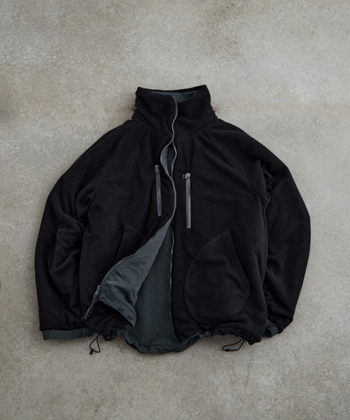◆拘り1枚で2つの表情を楽しむ。機能性とデザイン性を両立した2WAY ナイロン×ボア リバーシブルスタンドカラーブルゾンハリ感のあるナイロン生地と、暖かく柔らかなボアフリース生地を組み合わせたリバーシブルブルゾン。その日の気分や、インナー、着用シーンに合わせて印象をガラッと変えることができます。ナイロン面:光沢を抑えたシックなブラックのナイロン生地が、スポーティかつモードな印象を演出。高めのスタンドカラーと胸元と両脇のジップポケットが、洗練された都会的なデザイン。風を通しにくく、悪天候にも対応する機能的なアウターです。ボア面:ボリューム感のあるボアフリースが、暖かみとリラックス感をプラス。ゆったりとしたシルエットでトレンド感があり、着心地も抜群。抜群の保温性で、寒い季節のアウトドアシーンやカジュアルな着こなしに最適です。