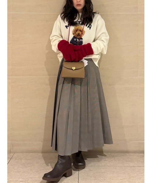 【ダブルのウエストとランダムプリーツで、こなれた着こなしが完成する主役級スカート】【Design/Styling】ランダムなプリーツがトレンド感ある、モードな雰囲気のスカートです。きれいめなスーツ地を使用しており、きちんと見えするのにデザイン性が高いのがスタイリッシュ。裾幅は広くなりすぎないようにして、すっきりと軽めに仕上げています。レイヤードしている風に見せてもいいし、シンプルなウエストですっきり見せるのも◎。トップスをタックインしてもアウトしてもサマになるデザインです。ベルトループもあるので、チェーンベルトなどでアクセントをつけるのもおすすめです。【Fabric】シワになりにくい、薄手のスーツ地を使用。高級感とシャリ感があって、大人っぽく着こなせる一枚です。カラーは3色をご用意。スタイリッシュな<KKI>、主役級の<RED>、トレンド感たっぷりの<CHECK>で展開しています。※照明の関係により、実際よりも色味が違って見える場合があります。またパソコン・スマートフォンなどの環境により、若干製品と画像のカラーが異なる場合もございます。予めご了承ください。商品の色味は、商品単品画像をご参照下さい。 ※商品画像はサンプルのため、色味やサイズ等の仕様に変更がある場合がございますので、予めご了承ください。