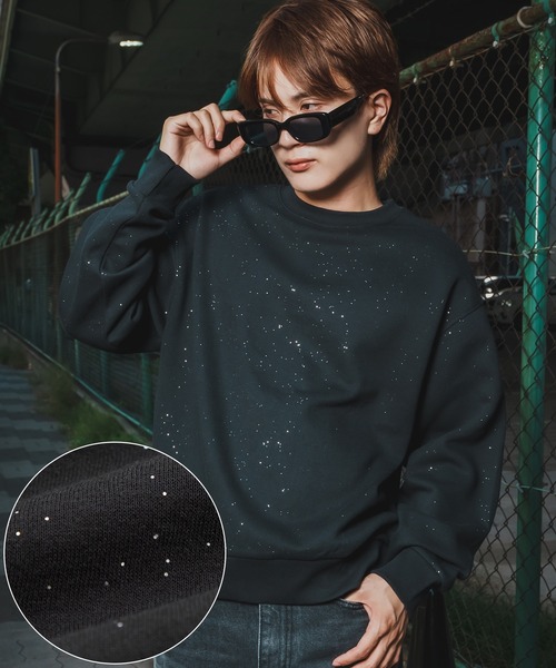 ラメのアクセントが魅力的ビッグシルエットスウェットプルオーバー。 ●繊細なラメのきらめきが華やかさを演出 ●ゆったりとしたリラックスシルエット ●肌触りの良い裏起毛素材 ●同素材のパンツとのセットアップも◎ 一見シンプルな無地ながら、生地全体に散りばめられた微細なラメが、さりげなく個性を主張するプルオーバーです。派手すぎない上品なきらめきが、ベーシックなカジュアルスタイルを洗練された印象に格上げします。リラックスからデイリースタイルまで幅広くおしゃれな着こなしができる万能な一着です。