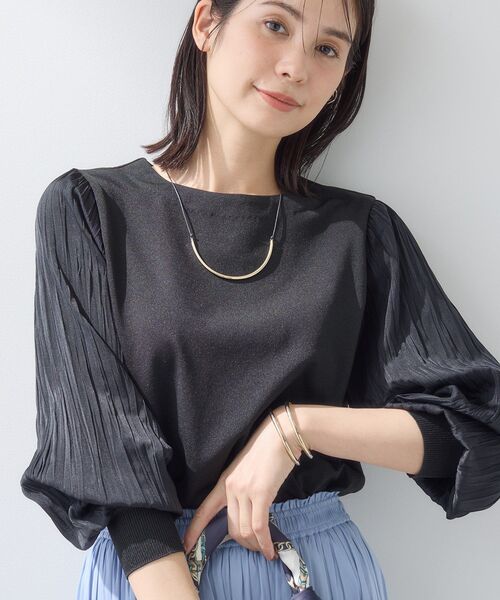 【デザインポイント】 袖にプリーツ加工の布帛をあしらった丸首ニットです。 1枚で華やかさが叶うデザインになっています。 身頃は柔らかなニットで着心地がよく、袖の軽やかなプリーツ風しわ加工がポイントになり、女性らしさを引き立てます。 【スタイリングポイント】 テーパードパンツでクールなオフィススタイリングはもちろん、ワイドパンツと合わせれば、抜け感のある大人のスタイリングに。 スカートと合わせれば、フェミニンで上品な印象に仕上がり、オン・オフどちらにも活躍する高い汎用性が魅力です。 コーディネート次第で幅広いシーンに対応する、ワードローブに1枚は持っておきたいトップスです。 【素材ポイント】 綿花の種子のうぶ毛(コットンリンター)を原料としたキュプラを使用しています。 上品な光沢と滑らかな肌触りが特徴で、高い吸放湿性を持ち合わせており、静電気が起きにくい特性もあります。 また、ストレッチ性のあるポリエステルとの特殊な撚糸(インターレース)による軽さと、きれいな表面感が特徴です。 ポリエステルはリサイクル原料を使用し、生分解性のあるキュプラと複合することにより、サスティナブルなストレッチヤーンに仕上がっています。 ※照明の関係により、実際よりも色味が違って見える場合があります。また、パソコン・スマートフォンなどの環境により、若干製品と画像のカラーが異なる場合もございます。 モデル情報:身長167cm B79 W59 H87 着用サイズ:38(M) 店舗へのお問い合わせ商品番号:127-15150 ●製品寸法: 05(XXS):着丈48cm B90cm 裄丈69cm 13(LL):着丈54cm B108cm 裄丈78cm 15(3L):着丈54cm B112cm 裄丈78cm 19(5L):着丈56cm B119cm 裄丈78cm 38(M):着丈53cm B100cm 裄丈76cm 備考: