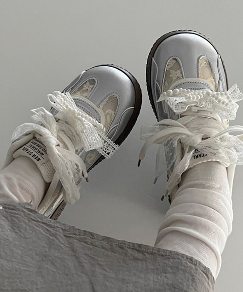 【2WAYで楽しめるパール&レース紐 ガーリースニーカー】普通のシューレースとレース紐の2種類の靴紐が付属し、気分に合わせて雰囲気をチェンジできるガーリーなスニーカー。さらに、安全ピンで留めるタイプの取り外し可能なパール付きリボンが付いていて、足元を一気に華やかにしてくれます。カジュアルコーデに甘さをプラスしたいときや、デートやお出かけの特別なスタイルにもぴったり。歩きやすさと可愛さを兼ね備えた、主役級のスニーカーです。詳細補足ソール:3cmサイズ感:普通サイズ詳細36:22.5cm-23.0cm相当37:23.0cm-23.5cm相当38:23.5cm-24.0cm相当39:24.0cm-24.5cm相当【c.u.l】▼お気に入り登録をおすすめします▼お得なセール情報や、人気完売商品の再入荷情報ラスト1点の通知など、耳寄りなお買い得情報をいち早く受ける事ができます。ブランド【c.u.l】のお気に入り登録もご一緒にお願い致します。■取扱注意事項■※サイズは、測定方法と測定者によって多少の誤差がありますのでご了承下さい。(平置き採寸)また足の形等によって、サイズ感に個人差がございます。※生地の素材上、においが気になる場合がございます。その際は風通しの良い所で陰干しして頂くと、ほとんど感じられなくなります。※湿気が少なく、日光等が直接当たらない通気のよい場所に保管してください。※水に濡れてしまった場合は、柔らかいきれいな布で素早く水気を取り、陰干ししてください。※ご購入の際は色・サイズを必ずお確かめの上、ご購入下さいませ。※商品外装箱につきましては商品を保護する梱包材の為、擦過痕や細かい傷、破れ、へこみ等が入荷した時点で生じている場合がございます。※上記のような商品につきましては商品本体の破損と判断せず、仕様販売とさせて頂いておりますので、商品外装箱の痛みを理由とした交換・返品につきましては不良品対応の対象外とさせて頂きます。※お使いのモニターや端末により、質感・色合いが実際の商品と異なって見える場合がございます。※着用画像は撮影状況や光によって、多少異なる場合がございますので置き画像をご確認下さい。※レザー製品(合皮も含む)は、素材の特性上徐々に劣化し固くなったり表面がひび割れてくることがありますのでご了承ください。また、熱に弱いためアイロンやドライヤーはかけないでください。※2023年7月1日より、環境に配慮した取り組みの一環として、紙のアテンションタグを廃止しております。