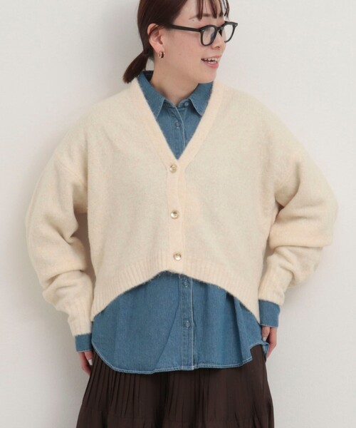 ◇25AW◇fredy couleurふわふわしたFOXタッチが魅力のVネックカーディガン◆Point・弾力のあるふわふわな質感がかわいいニット・やわらかく滑らかな肌触りでストレスフリーな着心地・後衿腰を高めにし、ショールを纏ったような雰囲気のデザイン・ワイドシルエットでこなれ感があり、前後差ヘムがすっきり見えを叶えます・マットな質感のメタルボタンが上品なアクセントに・羽織るだけで柔らかい雰囲気が出る万能ニットカーディガン----------------------------------------------------------透け感:アイボリーのみ若干あり裏地:なし伸縮性:あり光沢感:なし洗濯:手洗い可----------------------------------------------------------気になる商品は、お気に入り登録(♥マークをタップ!)がオススメですクーポン情報や入荷情報など、お得な通知が届くようになります----------------------------------------------------------●お取扱い上のご注意●末永くご愛用頂くために、アテンションタグを必ずご確認の上、着用又はお取り扱い下さい。※店頭及び屋外での撮影画像は、光の当たり具合で色味が違って見える場合があります。商品の色味は、スタジオ撮影の画像をご参照下さい。※商品画像に関しては出来る限り忠実に表示出来るよう努めておりますが、お客様がご利用のモニターの設定及び特性により、実際の商品と比較し色味に若干の誤差が生じる場合があります。※製品洗い加工の商品は、多少の歪み、シワなどが見られたり、風合いやサイズ等が1枚1枚異なります。汗や雨等で濡れた時や、摩擦により色落ちし、他の衣料を汚すことがありますので(特に濃色のもの)ご注意ください。
