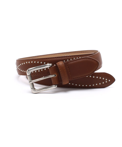 3cm幅の定番の太さのスタッズベルトです。模様をえがいたようなラインでスタッズが打たれたデザイン。スタッズが小さいのでハードになり過ぎず、色々なコーディネートにあわせやすいです。