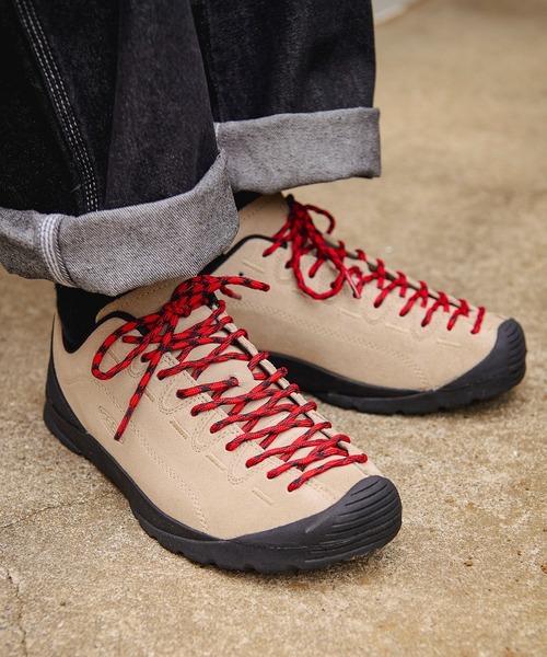 JASPER(ジャスパー)は、 オリジナルアウトドアスニーカーのロングセラー。クライミングシューズとコンフォートシューズをハイブリッドしたアウトドアスニーカー。ブランド、デザイン、スタイル、バリュープライスを兼ね揃えたプロダクトです。クライミングシューズをモチーフにした、ホールド性の高いレースシステムと高い通気性と速乾性に優れるメッシュライニングが、ドライで快適な履き心地を提供。FOOTBEDは足裏の形状に合わせて立体成型された、植物由来のマテリアルを採用した加重に対して潰れにくい PU(ポリウレタン)フットベッド。MIDSOLEはフットベッド一体型ミッドソール。OUTSOLE は接地感を高めるロープロファイルラバーアウトソール、踏み跡を残さず耐摩耗性とグリップ性に優れたノンマーキング仕様。