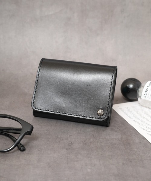 GOODLY/グッドリー ■point栃木レザーを使用したコンパクト財布にアメリカ製のスタッズを一つずつ手作業でカスタム。 コンパクトなサイズですが「お札は12枚程度」「カードは10枚」と必要なものをしっかりと収納が可能でバッグやポケットにすっきりと収まるサイズ感。 真鍮スタッズがアクセントとなり、クラシックな佇まいに程よいスパイスを加えています。 ■fabric 国内屈指の「栃木レザー社」のフルベジタブルタンニンレザーを使用。 ■coordinate ミニバッグやポケットにも収まりやすいサイズ感で、キャッシュレス派にもおすすめ。 アウトドア・キャンプ・フェスなどの軽装スタイルにもマッチ。 ギフトやペア使いにも人気で、男女問わず使えるユニセックスデザイン。 革小物好き・ミニ財布派・国産レザー愛用者に響く、こだわりの逸品です。 スタッズの配置違いで選ぶ楽しさもあり、コレクション性も◎。 <OKシーン> 通勤/通学/お出かけ/旅行/アウトドア/写真映え/ギフト/ミニバッグ対応/キャッシュレス派/革小物好き/ユニセックス使い/リンクコーデ/自分用にもプレゼントにも --- GOODLY/グッドリー --- "使いやすいオリジナリティを基軸に、細部にオリジナルのカスタムを施し量産にはない個性をプラス 【革製品についての注意事項】 天然皮革には生きて証である「キズ」「血管」「虫刺され」「シワ」「ホクロ」「色ムラ」などが必ずあります。 この表情も全て天然皮革の持ち味・個性となり、これらを除いた生産をすることは難しく個体差により商品に発生します。 革の裏面の色ムラは製品にする際、革を一定の厚さ調整を行う漉き(スキ)と呼ばれる加工によりムラが発生することがあります。 そのムラが色目によっては汚れのように見えますが、汚れではございません。 天然皮革商品をご理解の上、ご検討ください。 【スタッズ製品についての注意事項】 スタッズは一つずつ手作業で穴空けと打ち込みをしています。 スタッズ配置の若干のズレ、打ち込み作業時に革への打ち込み跡が残る場合がございます。 スタッズのブラス(ゴールド)色は真鍮のため、変色します。 また、スタッズの個体差で最初からムラがある場合があります。ご了承ください。" 【お買いものをお楽しみいただく為の方法】 ★商品のお気に入り登録★ ・完売カラーの再入荷通知や、ラスト1点の通知、セールの通知も受け取ることができます。 ★ブランドのお気に入り登録★ ・新商品や再入荷など、いち早くブランドのお得な情報を受け取ることができます! カウレザー/本革/秋服/冬服/春服/夏服