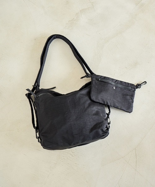 これ1つでショルダー・リュック・サコッシュとして!マルチに使える便利なバッグ!【素材】軽くて丈夫なナイロン素材を使用。【デザイン】ショルダーバッグとリュックに加え、パーツを外してサコッシュにもなる便利なマルチWAYバッグ。本体には前後や内側に4つ、ポーチショルダーにもポケット付きで収納力に優れています。ショルダーは長さ調節が可能で、中綿入りのため肩の負担を軽減してくれるのも嬉しいポイント。【スタイリング】軽量で多機能なため、デイリーユースから旅行やアウトドアまで、幅広いシーンで活躍します。カジュアルな装いはもちろん、スポーティーな着こなしにも合わせやすいアイテムです。