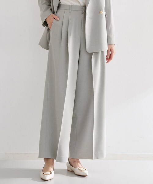 【デザイン&シルエット】シャークスキン素材を使用した2タック入りのワイドパンツは、カーブしたベルトラインが特徴で、ウエストにしっかりフィットする美しいシルエットを実現しています。シンプルながらも、きれいめからカジュアルまで幅広いスタイルに活用できるデザインです。【着心地&素材】良質なシャークスキンの手触りと耐久性が、落ち着いた印象と共に、しっかりとした着心地を提供します。2タックのディテールが、ウエストラインを引き締めながらも自然な流れを保ち、全体的にバランスの取れたスタイリッシュな仕上がりに。【コーディネート&セットアップ】個別に着ても、シンプルなトップスと合わせれば洗練されたコーディネートに。さらに、040‐45004 CAVIAN Wブレストジャケットとのセットアップで、より一層統一感のある大人の装いを演出するため、オフィスからカジュアルなお出かけまで、シーンを問わず活躍します。【仕様】・ポケット数:横×2 後ろ×2・前ファスナー・ウエスト後ろゴム・裏地なし※照明の関係により、実際よりも色味が違って見える場合があります。また、パソコン・スマートフォンなどの環境により、若干製品と画像のカラーが異なる場合もございます。モデル情報:身長171cm B77 W59 H87 着用サイズ:12(M)店舗へのお問い合わせ商品番号:040-65007●製品寸法:11(S):W68cm H114cm 股下67cm 前股上31cm 渡り幅37cm 裾幅29cm12(M):W69cm H115cm 股下68cm 前股上31cm 渡り幅38cm 裾幅30cm13(L):W71cm H117cm 股下70cm 前股上32cm 渡り幅40cm 裾幅30cm備考: