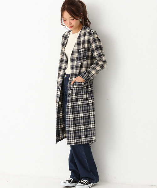 2チェックロングシャツ ネイビー☆2パターンのチェック柄を切り替えたロングシャツ♪ガウン風に着こなせるようなエリのディティールとウエストリボンを取り入れました。温かみのある風合いと長めの丈感は、シンプルスタイルにプラスワンするだけで、今年らしくまとまる一枚です。※こちらの商品は、ネル生地を使用しています。ネルは生地の起毛感が特徴ですが、起毛生地は摩擦をするとピリングになりやすい特徴もあります。ピリングが気になる場合は引っ張ったりせず、毛玉取り機やはさみでカットしてください。 ※着用、お取り扱いの際は商品についておりますアテンションタグ、洗濯ネームを必ずご確認ください。店舗にお問い合わせの際は、全国のAnother Edition店舗まで下記の品名/品番をお申し付け下さい。品名:AEBC 2CHK LONG SHT NY品番:56151990904