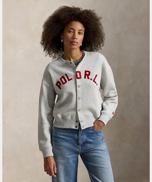 ガーメントウォッシュ加工のフリースで仕立てたクルーネック カーディガン。フロントを横切るようにあしらったシグネチャーのロゴのプリントと、カフスに施したポニー刺繍が特徴。・リラックスフィット / 腰丈。・リブのクルーネック / スナップ付き前立て。・長袖、リブカフス / 左袖のカフスの上にシグネチャーのポニー刺繍。・フロント中央に"Polo R.L."のプリント / サイドシームポケット / リブの裾。・Ralph Laurenのコットン製品を選ぶことで、環境の保護と修復に努めながら、コットン業界が今後も成長を続けられるように支援するBetter Cotton™ミッションへのRalph Laurenの取り組みをサポートすることになります。・本商品は物質収支方式に則って材料を調達しているため、全ての製品にBetter Cotton™が含まれない可能性があります。物質収支方式について詳しくは、bettercotton.org/massbalanceをご覧ください。・モデル身長178cm、着用サイズS。※商品の色味は、光のあたり具合など諸条件により色感が多少異なって見える場合がございますので予めご了承下さい。ポロ ラルフ ローレン