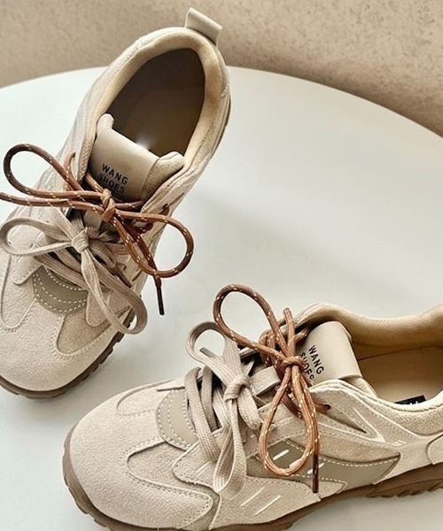 ◆DETAIL◇ 存在感たっぷりのチャンキーソールが魅力の【バイカラーシューレース ダッドスニーカー】バイカラーのシューレースがアクセントになり、足元に抜け感とこなれ感をプラスします。 程よいボリュームの厚底ソールでスタイルアップを狙いつつ、クッション性のある柔らかな履き心地でデイリーに大活躍。 ストリート・カジュアル・スポーティなど幅広いコーデにマッチし、季節を問わず使える万能スニーカーです。 冬らしいスエード調の生地感と配色の靴ひもがアクセントになって履くだけで即おしゃれ見えします◎ ◆COORDINATE◇ ・ワイドデニムやカーゴパンツと合わせてトレンド感あるストリートコーデ ・スウェットセットアップに合わせてスポーティな抜け感をプラス ・タイトスカートやワンピースに合わせて、甘辛ミックスのバランスに ・秋冬はオーバーサイズアウターと好相性で、重ためコーデにも馴染む◎ ーーーーーーーーーーーーーーーーーーーーーーー 【色展開】ブラウン/ベージュ/イエロー/キャメル ーーーーーーーーーーーーーーーーーーーーーーー <着用レビュー> 【スタッフA:155cm / 23.5cm】 M着用:厚底なのに軽く、長時間歩いても疲れにくい。イエローは差し色になって可愛いです。 【スタッフB:160cm / 24.0cm】 L着用:フィット感が良く、クッション性が高いのでデイリーに使いやすい。ベージュはどんな服にも合わせやすい万能カラー。 【スタッフC:167cm / 24.5cm】 L着用:チャンキーソールでもごつく見えすぎず、程よいボリューム感が今っぽい。ブラウンは大人っぽく使えてお気に入り。 ▼POINT ・スニーカー ・ダッドスニーカー・チャンキーソール・厚底スニーカー ・ゴツめ・バイカラー・ボリュームソール・スタイルアップ・クッションソール・軽量スニーカー・フィット感◎・歩きやすい・デイリースニーカー・韓国風・ストリートコーデ・カジュアルコーデ・スポーティコーデ・26SS ・26年春夏・春服 ▼商品について▼ ※着用身長によって画像イメージと異なる場合があります。 ※画像の商品はサンプルとなります。実際の商品と色味、仕様、加工、サイズ、素材等が若干異なる場合がございます。 ※商品の色味は、撮影場所や光のあたり具合、お使いの端末により色味が違って見える場合がございます。予めご了承の上ご注文下さい。 ▼お取り扱いについて▼ ※着用またはお取り扱いの際は、アテンションタグや洗濯ネームを必ずご確認ください。 《お知らせ》 ▼商品のお気に入り登録 お気に入りアイテムの値下げ・再入荷・在庫1点などの通知を受け取ることができます。 ▼ブランドのお気に入り登録 新商品や再入荷、セール、クーポン配布などお得な情報を受け取ることができます。 ※他のキャンペーンにより、期間中に価格が変動する場合があります。※セールは予告なく終了させていただく場合もあります。