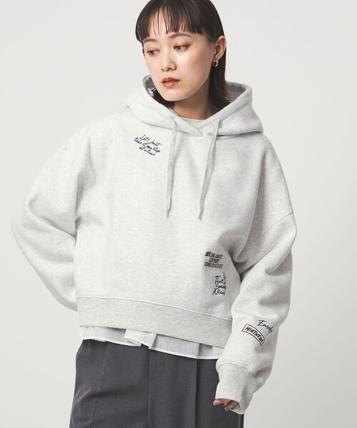 ■WEB限定商品■長く着られるベーシックアイテムが揃う新ライン<at ease(アットイーズ)>より、冬の新作が登場!キーワードは、「着心地の良い毎日の定番」「楽に決まるワンツーコーデ」日常に溶け込む、毎日着たくなるデイリーウェアをテーマに、気軽にファッションを楽しみたい大人のためのラインナップをご提案します。■デザイン落書きのようなグラフィックが入ったフーディー。グラフィックの刺しゅうは色目を抑え、大人な雰囲気で着用いただけるようこだわりました。短めの着丈と程よくゆとりのあるサイジングで、ぱっと着るだけでサマ見えするシルエットも魅力。さらっと一枚でこなれ感のある大人のカジュアルスタイルを叶える一着です。■素材ふっくらとした肉感のある裏起毛スウェット。柔らかな着心地もポイントです。■コーディネートワイドパンツなどボリューム感のあるシルエットのボトムスとの合わせがおすすめ。裾デザインのカットソーを合わせた着こなしも◎#秋服,#冬服,#オンオフ兼用,#仕事,#デイリー,#通勤,#カジュアル============================ケア方法:洗濯機洗い可============================<at ease(アットイーズ)>日常に溶け込む、毎日着たくなるデイリーウェアをテーマに、気軽にファッションを楽しみたい大人のためのラインナップをご提案します。【注意事項】※画像の商品はサンプルです。※商品に「取り扱い上の注意書き」、「洗濯表示」がございます場合は、使用前に必ずご確認ください。※商品画像は、光の当たり具合やパソコンなどの閲覧環境により、実際の色味と異なって見える場合がございます。あらかじめご了承ください。※商品の色味の目安は、商品単体の画像をご参照ください。お問い合わせの際は、ユナイテッドアローズ カスタマーサービスデスクまで下記の品名/品番をお申し付けください。品名:★★SC ate エンブロ HOODY 品番:36121000032