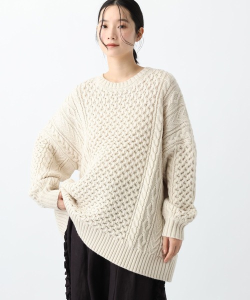 ザックリ感が大人可愛い一枚ゆったりシルエットのケーブルニットプルオーバーーーー【素材】肌触りが柔らかいウール混を使用。ざっくりとした表面感が特徴です。【デザイン】ザックリとした表面感が可愛いケーブルニットプルオーバー。ナチュラルに今っぽく着用できるように、シルエットや柄にもこだわった一枚です。ゆったりとしたシルエットも可愛いポイント◎ーーー【スタイリング】パンツにもスカートにも合う一枚。インにシャツやシアーインナーを合わせても素敵です。
