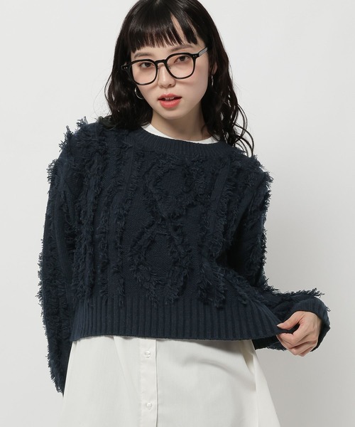 トレンド感たっぷりなケーブルフリンジニット!■素材特性ポリエステルの耐久性とアクリルの保温性のどちらともの利点を活かした混合素材。目の詰まったハイゲージニットで滑らかな肌触りで、ごわつかず重ね着しやすい生地感です。■デザインケーブル編みとフリンジが動きのあるデザインのニットプルオーバー!毛足の長すぎないフリンジなので、華やかながらも派手になり過ぎなく上品な着こなしに◎短めな丈感ですっきりとしたシルエットにまとまりボトムスとのバランスもとりやすいです。カジュアルにもきれいめにも幅広くマッチする着回しやすい1枚に。■おすすめスタイリング1枚で着映えするトレンド感たっぷりなニットはシンプルなボトムスに合わせるだけで抜け感のあるスタイルリングに◎丈感を活かしてシャツやカットソーとのレイヤードスタイルも楽しむことができます。※サンプルにて撮影をしておりますので、実際の商品とは仕様や加工・サイズ等が若干異なる場合がございます。※屋外の光や照明の当たり具合で、実物と色味が異なって見える場合がございます。詳細画像の色味をご確認ください。 なお、商品の色や質感を出来るだけ忠実に再現するよう心掛けておりますが、パソコンなどの環境により、実物と若干異なる場合がございます。※写真を許可無くコピー・転用することは固くお断りします。