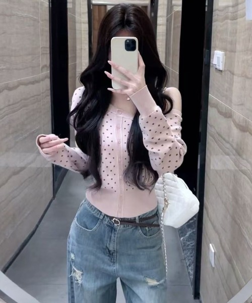 小粒ドットで甘すぎない大人かわいさ◎ドット柄ワンショルニットトップス【デザイン】小さなドット柄が可愛らしい印象のワンショルダーニットトップス♪ さりげない肌見せデザインで、抜け感と女性らしさを両立します。どんなボトムとも相性抜群◎トレンドライクなシルエットを演出!シンプルながらもディテールにこだわった1枚です。【素材感】着心地が柔らかいアクリル素材伸縮性:あり/ 透け感:なし / 裏地:なし 手洗いによる洗濯可 / ドライ・ウェットクリーニング可【コーディネート】ミニスカートと合わせて韓国ガール風に仕上げたり、ワイドパンツでゆるっと大人カジュアルにまとめても◎ インナーにタンクトップを重ねて、肩を少し落として着こなすのもおすすめです♪ 季節の変わり目にも温度調整としてぴったりな万能トップスです。【※お取り扱い上のご注意】1:モニター環境等により実際の商品と多少色味が異なって表示される場合がございます。予めご了承下さい。2:屋外で撮影された商品は、天候により多少実際のカラーと異なる場合があります。商品のカラーはトルソー(マネキン)の商品画像をご参照ください。3:濃い色の商品は、お洗濯や摩擦等による移染にご注意ください。4:末永くご愛用頂く為に、アテンションタグ・洗濯ネームを必ずご確認の上、着用又はお取り扱い下さい。5:生産時期により、色、サイズ、デザイン、素材の質感が多少が異なる場合がございます。あらかじめ御了承下さいませ。