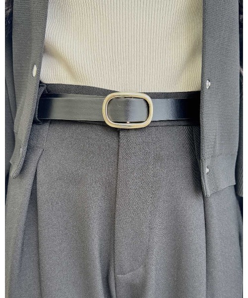 シンプルで使いやすいベルトはワードローブの必須アイテム。 すっきりとしたオーバル型のバックルがスタイリッシュなアクセントになってくれます。 細めの帯はパンツに合わせるのはもちろん、ワンピースなどのウエストマークにもぴったり。 コーディネイトに合わせてリバーシブルで使えるデザイン性にも注目です。 ・合成皮革