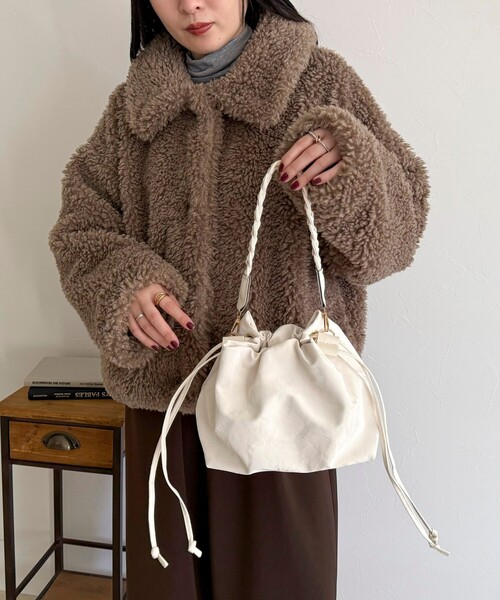 ◇fredy emue◇ 【2025 AW】 三つ編みハンドルがポイントの 2wayで使える巾着バッグ ●point ・三つ編みデザインのハンドルがポイントの巾着バッグ ・シンプルながら表情のある素材感が魅力 ・柔らかく軽量な素材で、持ちやすさも抜群です ・ショルダー付きの2way仕様で、手持ちでも斜め掛けでも楽しめます ・巾着デザインで中身が見えにくいのも嬉しいポイント ・コンパクトながら必要な小物をしっかり収納できるサイズ感◎ ・デイリー使いはもちろん、ちょっとしたお出かけにも活躍するアイテムです 《収納の目安》 ・長財布 ・スマートフォン ・イヤホン ・タオルハンカチ ・ポケットティッシュ ◇商品のお気に入り登録◇ 【お気に入りに登録】を是非ご活用ください。 再入荷の通知がいち早く届きます。 ●お取扱い上のご注意● *アテンションタグを必ずご確認の上、着用又はお取り扱い下さい。 *店頭及び屋外での撮影画像は、光の当たり具合で色味が違って見える場合があります。商品の色味は、スタジオ撮影の画像をご参照下さい。 *商品画像に関しては出来る限り忠実に表示出来るよう努めておりますが、お客様がご利用のモニターの設定及び特性により、実際の商品と比較し色味に若干の誤差が生じる場合があります。 *生地の特性上、やや匂いが強く感じられるものもございますので予めご了承下さい。 *雨や汗による、濡れた状態での使用は、色落ちや色移行の原因となる場合がありますので十分にご注意下さい。 ※サンプルでの採寸のため、サイズ表はあくまで目安となります。予めご了承ください。