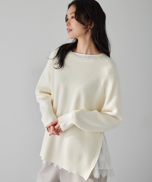 サイドジップがポイントの両畦ニット・カジュアルになりすぎないハーフラグランの両畦ニット・左サイドに配されたジッパーは、開閉によって自由自在にスリットを調整可能・しっかり目を立てて編み込んだ生地で、きれいめな着こなしが叶います・ストレッチ性のあるもっちりとした両畦編みで、快適な着心地・コートの下でも映えるカラーバリエーションも◎【スタイリング】カラーインナーのチラ見せやボリュームのあるボトム合わせにもおススメ。レイヤードスタイルも楽しめるアイテム。合わせるアイテムを選ばず、タイトスカートからワイドパンツまで、どんなボトムともバランス良く決まる万能な一枚です。【素材】お手入れ方法:ハンドウォッシャブルストレッチ性のあるもっちりとした糸の両畦ニットです。肌触りが良く保温性に優れています。---------------------------------透け感:やや透ける伸縮性:あり生地の厚さ:普通裏地:なし※こちらは参考情報となります。カラーにより多少の誤差がございます。※ホワイトで計測しています。---------------------------------【原産国】中国お買い物をお得にもっと楽しく!上手な活用方法>>>▼商品のお気に入り登録▼完売カラーの再入荷通知や、ラスト1点の通知、プライスダウンしたセール通知も受け取ることができます。▼ブランドのお気に入り登録▼新作や再入荷等、いち早くブランドのお得な情報を受け取ることができます。【ご注意】※屋外の光や照明の当たり具合で、実際の商品の色味とカラー別画像の色味に若干の違いが発生する場合がございます。詳細画像と併せてご確認の上、ご注文いただきますようお願い致します。※サンプルにて撮影をしておりますので、実際の商品とは色味・仕様や加工・サイズ等が若干異なる場合がございます。予めご了承くださいませ。