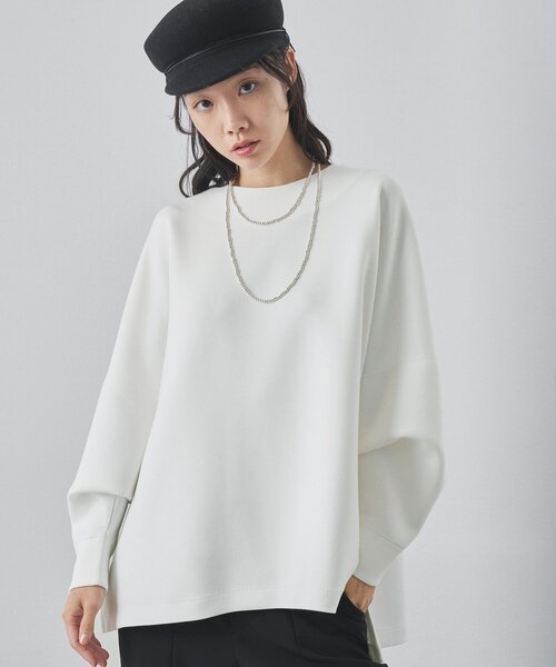 【2026SS】 ストレスフリーに楽しめる、大人のダンボールプルオーバー ■軽くて柔らかなダンボール素材を使用したクルーネックプルオーバー。 ■ゆとりのあるスリーブやオーバーシルエットのストレスフリーな着心地が魅力。 ■クルーネックのシンプルなデザインながら、ワイドな身幅と脇スリットで抜け感のあるシルエットを実現。 ■お尻までしっかり隠れる着丈で体型カバーしつつ、きれい見えを叶えてくれる一枚。 ■袖をたくし上げてもサマになり、カジュアルすぎない雰囲気が大人のデイリー使いにぴったりのアイテム。 【COLOR】 オフホワイト:クリーンな印象に仕上げてくれるオフホワイト。 ブラック:クールな雰囲気を纏えるきれいめブラック。 【MATERIAL】 スポンジのような膨らみと柔らかさ、軽さ、さらにストレッチ性を兼ね備えたダンボール素材。 ---------------------------------------------------- 洗濯方法:手洗い可 透け感:なし 裏地:なし 伸縮性:あり 光沢感:なし ---------------------------------------------------- 【注意事項】 ・画像の商品はサンプルです。実際の商品と仕様、加工が若干異なる場合があります。 また 、パソコンやスマートフォンのモニター環境などにより、色味が違って見える場合があります。 ・店頭及び屋外での撮影画像は、光の当たり具合で色味が違って見える場合があります。 商品の色味は、スタジオ撮影の画像をご参照ください。 ・入荷状況により、お届け予定が前後する場合があります。 ・お客様への発送が店頭販売より遅れる場合があります。 ・追加生産商品は、一部の店舗、通販で販売中の場合があります。 予めご了承下さい。 【気になるアイテムは、「お気に入り」登録を】 ハートマークをクリックしておくことで、スムーズにお買い物が楽しめます。 ・ラスト一点のお知らせ ・再入荷のお知らせ ・SALEのご案内