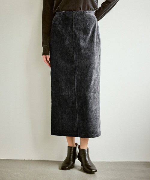 【素材感】・シェニール織ならではのほどよい起毛感とマットな質感が魅力。・伸縮性があり、長時間の着用でもストレスフリー。・しっかりとした肉感に加えて裏地付きで、淡いカラーも安心。【デザイン・シルエット】・すっきりとしたアイラインシルエットのスカート。・フロントのハギとステッチが縦ラインを強調し、スタイルアップ効果をプラス。・シンプルながらも品よく見える大人向けデザイン。【カラー】・チャコール、アイボリーの2色展開。 どちらも落ち着いたトーンで合わせやすく、秋冬コーデに馴染むカラー。【おすすめスタイリング】・フェザーニットやスパンコールニット、ブークレニットなどゆるめのトップスと合わせてバランス良く着こなすのがおすすめ。・ショート丈ニットと合わせてスタイルアップ見せにも◎。----------------------------- 裏地:あり 光沢感:あり 透け感:なし 伸縮性:あり ウエスト:後ろ一部ゴム ファスナー:左ファスナー ポケット:なし ボタン:なし 生地の厚さ:やや厚手 季節:春、秋、冬 -----------------------------※撮影時の光、お使いのモニター環境によって色の見え方が違う場合がございます。【モデル着用サイズ】モデル身長:168cm、着用サイズ:M