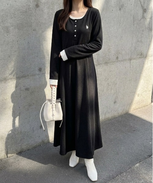 U.S. POLO ASSN.×GeeRA ヘンリーネックが今っぽい美ラインワンピース 〇U.S. POLO ASSN.とGeeRAのコラボ商品 〇レイヤード風のヘンリーネックが今っぽい! 〇着るだけでスタイルアップ魅せする美しいシルエット 〇柔らかく肌触りの良いカットソー素材 ■デザイン U.S. POLO ASSN.×GeeRAのコラボ商品にヘンリーネックワンピースが登場! GeeRAでしか買えない別注オリジナルアイテムです。 レイヤード風のヘンリーネックデザインがオシャレでトレンド感を演出。 女らしいフィット&フレアーシルエットが着るだけでスタイルアップに。 袖口のレイヤード風デザインも価値観をプラスしてくれます。 着るだけでトレンドスタイルが即決まる優秀アイテムです♪ ■素材 サラっとした肌ざわりのカットソー素材 柔らかで伸縮性のある素材なので着心地も◎ …………………… 透け感:なし 厚さ:普通 伸縮性:あり 裏地:なし 洗濯方法:洗濯機 …………………… ■コーディネート レイヤード風デザインなので、1枚でさっと着るだけでオシャレ見え! 大人っぽいブーツを合わせたフェミニンな着こなしはもちろん、今っぽいハイテクスニーカーと合わせたカジュアルスタイルもおススメです。 キャップや厚底スニーカーなど、あえてスポーティーな小物で固めるカジュアルコーデも◎ ●ポケット無 --------------------------------------------------------------------- ※サイズ寸法は実際の寸法と多少の誤差がある場合が ございます。 ※ご覧いただいているPC/WEB環境や撮影環境により、 多少色味が異なって見える場合がございます。 【お買い物をよりお楽しみいただく為に】 ▼商品のお気に入り登録をおすすめします♪ 『♡をクリック!』 完売カラーの再入荷やラスト1点の追加、 セールの際の通知を受ける事ができます。 ブランドのお気に入り登録もご一緒にお願い致します。 ---------------------------------------------------------------------