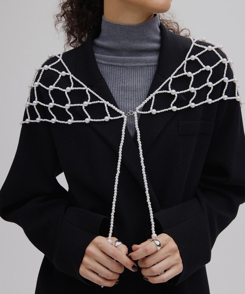 パールで作成した肩掛けスカーフ。ジャケットやトップス、シンプルなドレスなど様々なアイテムにレイヤードするだけで華やかな印象をプラス。紐先のフリンジデザインもさりげないアクセント。普段使いはもちろん、オケージョンシーンにもプラスワン可能な最適なアイテム。※ブランドロゴのリニューアル移行期間に伴い、モデル着用商品および商品単体画像とお届け予定の商品とで付属品のロゴデザインが異なる場合がございます。予めご了承ください。※商品画像はサンプルのため、色味やサイズ、素材の混率等の仕様に変更がある場合がございますので、予めご了承ください。※モデル着用写真につきましては、光や照明の加減により、実際よりも色味が異なって見える場合がございます。商品の色味は、商品単品の画像をご参考ください。また、使用しているパソコンのモニターやスマートフォン等の設定により、現物と画像の色味が若干異なる場合もございます。予めご了承ください。《商品に関しまして》▼真鍮/アクリル製品アクセサリーをご愛用頂くにあたって、メッキ製品は体質によりかぶれを生じる場合がありますので皮膚に異常を感じた時は、ご使用をお止めいただき皮膚科専門医にご相談ください。雨、水、汗、湿気などによる色落ち、硫化による変色の可能性がありますので使用後は布等で優しく拭いて頂き、なるべく空気に触れないよう保管してください。長期放置やスプレー香料などの同時使用は特にお避け下さい。アクセサリーをつけたままの入浴や水辺での作業は厳禁です。本製品はデザイン性を重視し、繊細な仕上がりとなっております。過度な力が加わりますと破損する恐れがあります。お取り扱いには十分にご注意ください。