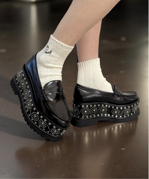 厚底×スタッズ装飾で存在感抜群のデザインローファー クラシックなローファーデザインに、 存在感ある厚底とスタッズ装飾を組み合わせた個性派デザイン。 ソール周りに施されたメタル×パターンスタッズが、足元にエッジの効いたアクセントをプラス。 モード、ロック、ストリートスタイルの主役として、シンプルなコーデの引き締めにもおすすめの1足。 ●POINT● -厚底ソール ボリュームのあるソールは約8cm 高低差は約1cmとなっておりプラットフォームのような安定感◎ 足元のボリュームで脚が細く見える効果と スタイリングのアクセントとしても -ローファーデザイン シーズンレスで活躍するローファーは レッグウェアとの合わせ方次第でオールシーズン楽しめます -シルバースタッズ ソール部分にデコレートしたシルバーのスタッズが存在感◎ ベーシックなローファーもスタッズを施しクールなルックスに 【スペック情報】 重さ(片足):約587g ~個人差がありますので参考程度にお考え下さい~ 【スタッフ着用コメント】 *スタッフY [足幅:標準(D)/甲の高さ:標準] [普段のサイズ:37or38] [足長]右足:23.2cm、左足:23.3cm [足囲]右足:22.0cm、左足:22.2cm [着用サイズ:37/着用状況:ソックス/サイズ感:小さめ] [着用コメント] 普段のサイズだと全体的にタイトに感じたためワンサイズアップを選びます。 デザインソールがかわいいローファーでオールシーズン履きたいデザイン。 クラシカルな印象のローファーもこのアイテムならワンランク上のアイテムになります。 【JeffreyCampbell/ジェフリーキャンベル】 2000年スペイン生まれのシューズブランド。 ビンテージテイストをベースに、ストリートカルチャーと ランウェイの華やかさをミックス。革新的なデザインと 機能にこだわったコレクションは世界ブランドへ。 ディティールの隅々まで注ぎ込まれた情熱、 それがジェフリーキャンベルの証です。 品番:FJF4749