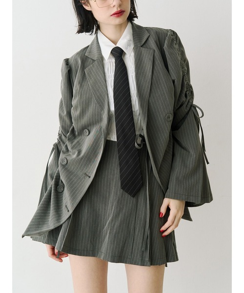 【ポイント】 身頃と袖のシャーリングリボンデザインとダブルボタンがアクセントになったジャケット風のミニワンピース。 jouetie(ジュエティ)ならではのマニッシュ×ガーリーな甘辛MIXスタイルが叶います。 シャーリングで裾や袖の丈感やギャザーは調整可能!伸ばすとフラットになるので、その日の気分でベーシックにも着用出来ます。 【スタイリング】 これだけで甘辛MIXスタイルが完成します! 付属のベルトでウエストマークをして、1枚でワンピースとして着用するのがおすすめです。 前を開けて羽織ればジャケットとしても着用できます。 同素材のリボンプリーツスカパンとのセットアップ着用や、フィットフレアパンツを合わせるパンツレイヤードスタイリングもおすすめです! キャップやTシャツなどのカジュアルアイテムで外すとデイリーシーンにも馴染み、よりこなれ感のあるコーディネートになります。 【セットアップ対応アイテム】 ・リボンプリーツスカパン(082610800501)【スタッフ着用コメント】・153cm/サイズ:M身長153cmでお尻が隠れる丈です。フロント部分と袖の上部がギャザーデザインになっているデザインジャケット🧥🧡ギャザーの寄せ具合は自分の好みに調整して使っていただけます!テロっとした柔らかい軽い素材感なので着る服に迷う季節の変わり目に最適です!✨長袖アイテムに羽織るのはもちろん、タンクトップやTシャツアイテムに羽織って気温調節アイテムとして着ても可愛いです!・156cm/サイズ:Mギャザーのデザインが可愛いジャケット!肩幅も狭めなので華奢見えして盛れます!着用感はわりとゆったりめなので袖もゆとりがあるので中に厚めなトップスを着てもいけそうです。156cmでおしりの下くらいの丈感です。※着用画像はフラッシュの加減で実際の製品と色味等が異なる場合がございますので、生地のズームアップ画像をご確認ください。 ※ご利用の端末画面の設定により実際の商品と色味が異なる場合がございます。 ※正しいサイズはアイテムサイズ表をご確認ください。 ※商品のお取り扱いについては、脇についている洗濯ネーム類をご確認下さい。【jouetie ZOZOTOWN お買い物ガイド】▼商品をお気に入り登録!♡をクリック!完売商品の再入荷やラスト1点の通知、セール開始時にお知らせ!▼"jouetie(ジュエティ)"をお気に入りブランドに登録!新商品や再入荷など、ブランド最新情報をいち早くお知らせ!