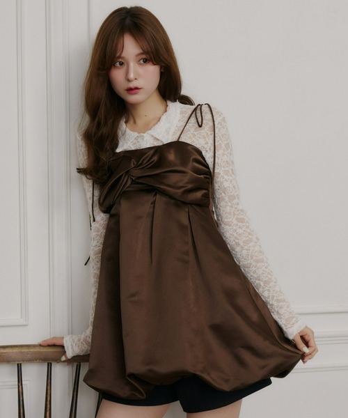 ツヤを纏って、ふわりと可愛い主役級ワンピサテンの上品な光沢と、ふんわりと丸みのあるバルーンシルエットが魅力のワンピースが登場。胸元には立体的なドレープをあしらい、柔らかい華やかさを引き出してくれます。肩紐はリボンのように結んで調整ができ、お好みの丈感でご着用いただけます。両サイドにポケットを施して、可愛くも実用的に仕上げました。生地にはほどよいハリがあり、動くたびに立体的な表情が生まれる上質なサテンを採用。ブラウンは深みのある落ち着いた印象に、ホワイトはクリーンで柔らかな雰囲気に仕上がり、どちらも品のある佇まいで、高級感を引き立てます。タートルやレースインナーとのレイヤードで大人可愛いスタイルが完成。暖かくなる季節は一枚でシンプルに着ても、ほどよい華やかさが生まれます。軽やかな着心地なので、季節を問わずお楽しみいただけます。ブーツやサンダルなど、合わせるシューズによって印象が変わり、さまざまなシーンにご着用いただける万能ワンピースです。・色物(特に濃色)と白物・淡色物は分けて洗って下さい。・洗濯ネットを使用して下さい。・摩擦や雨、汗により他の衣類や下着に色が移ることがあります。・アイロンの際はあて布を使用して下さい。・直射日光や蛍光灯の光に長時間さらされると変色の恐れがあります。■公式 Instagram【@olu.myself】新作やキャンペーン情報などを発信していますˎˊ˗ぜひお買い物の参考にしてください。