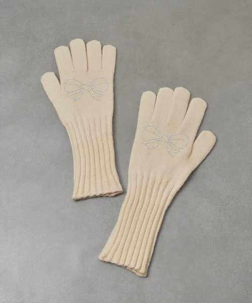 リボンストーンがポイントの手袋手元までぬかりなく可愛く。リボンストーンがワンポイントになった、ガーリーな手袋が登場!ふんわりと手元をしっかり包み込み、秋冬の防寒対策もばっちり◎指先の開いたフィンガーホール仕様なので、スマホ操作やちょっとした作業もノンストレス。[Point]〇指先が使えるフィンガーレス仕様でスマホ対応◎〇毎日使いたくなる柔らかくあたたかなつけ心地